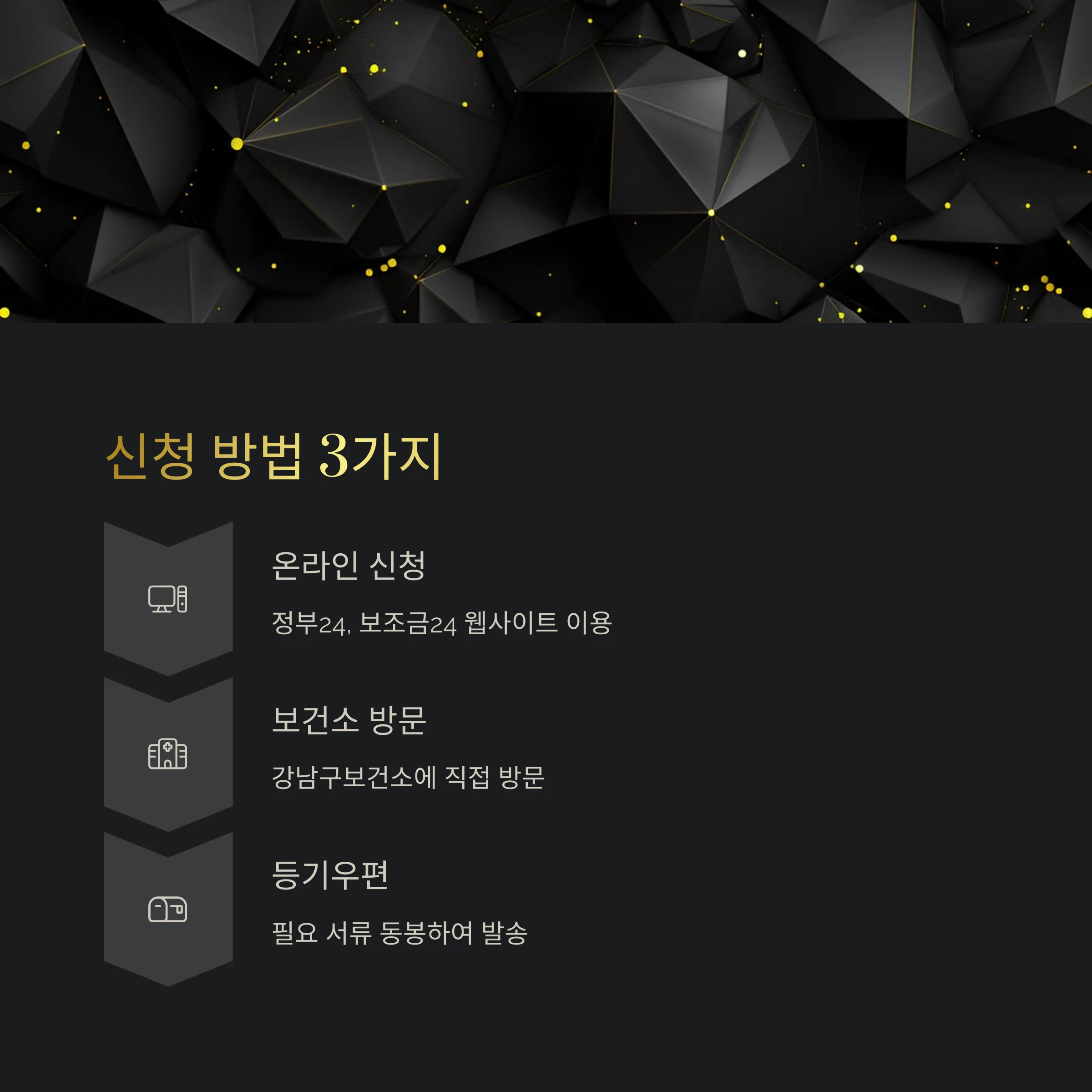 - 방문 신청: 강남구 보건소 1층 의료비지원실