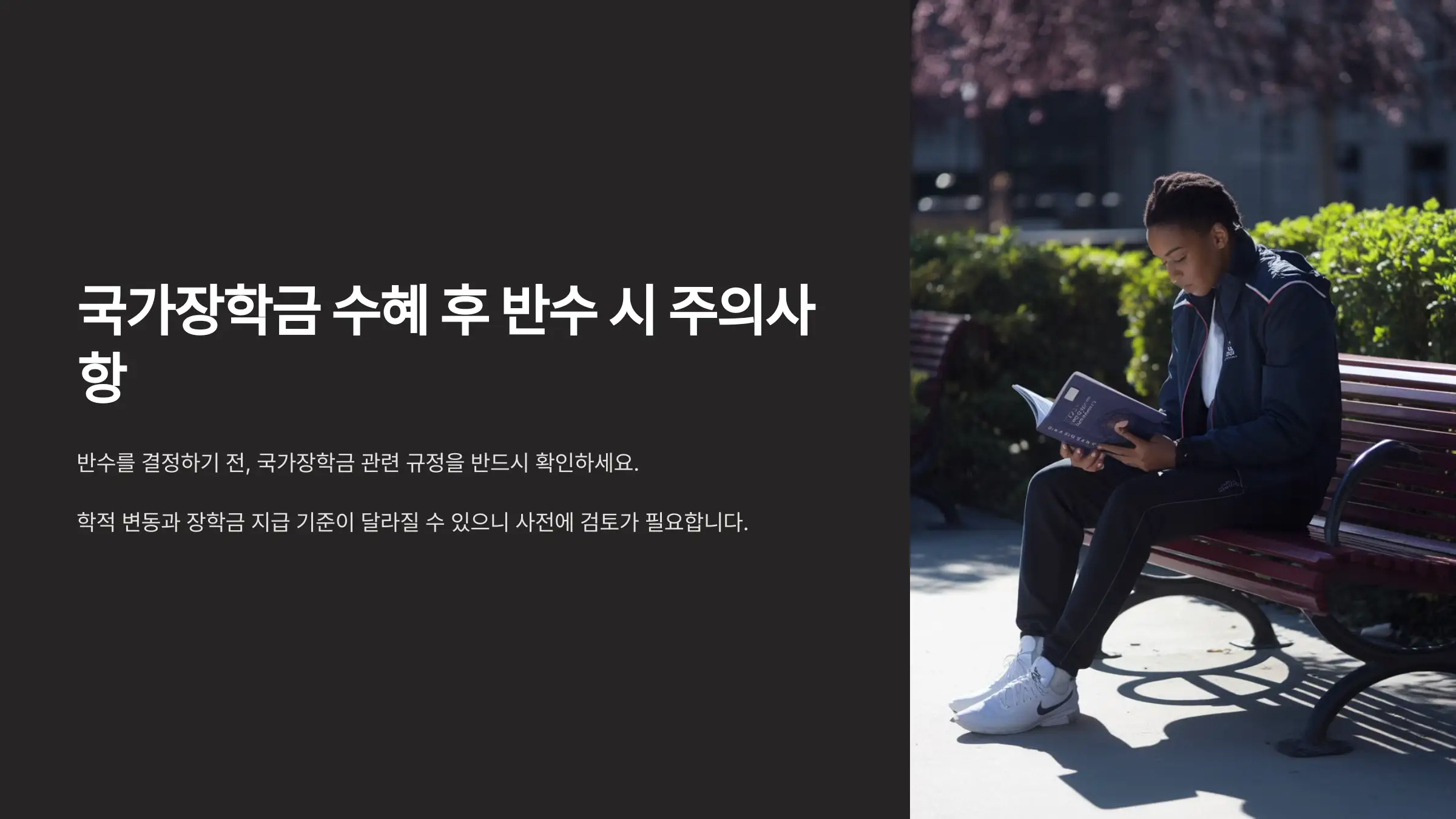 국가장학금을 받은 후 반수를 계획하거나 실행 중이라면, 장학금 반환 규정과 재신청 가능 여부를 반드시 확인해야 합니다. 국가장학금은 학비 지원을 목적으로 하는 제도이므로, 학적 상태가 변경되거나 등록금을 환불받는 경우 반환 의무가 발생할 수 있습니다.