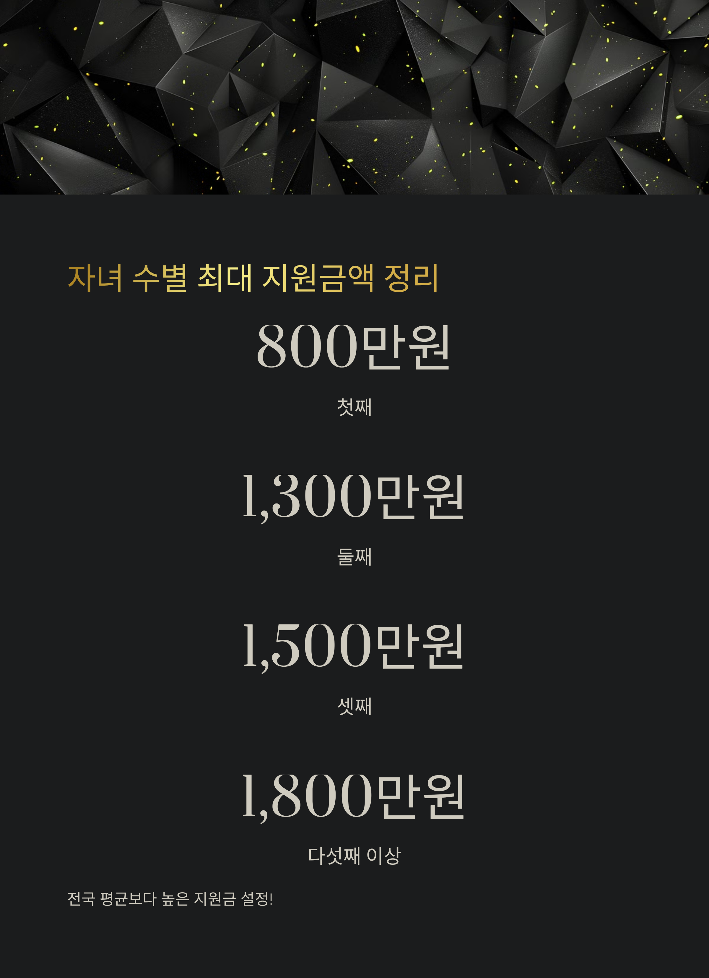 다섯째 이상 1,800만원 450만원 450만원 × 3년