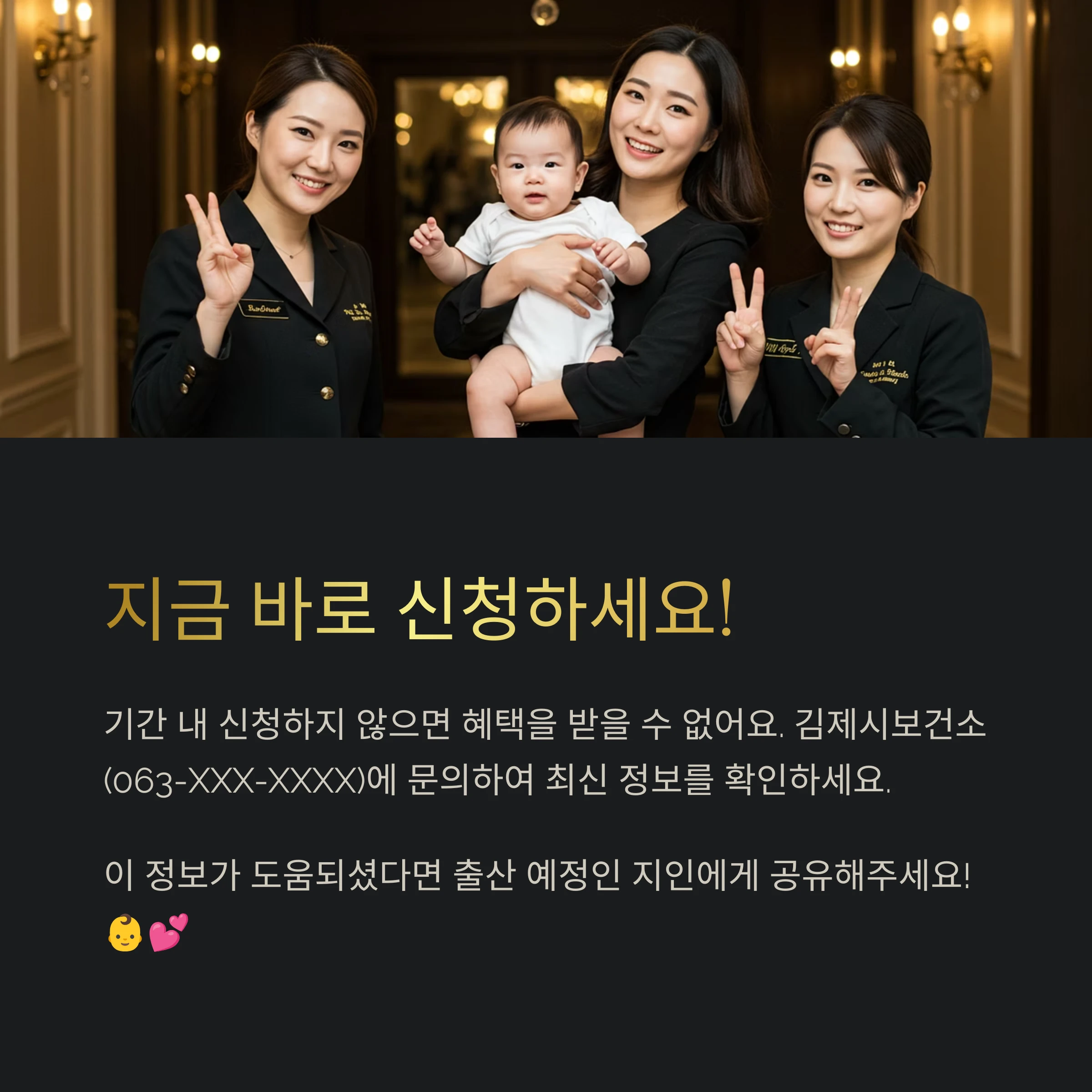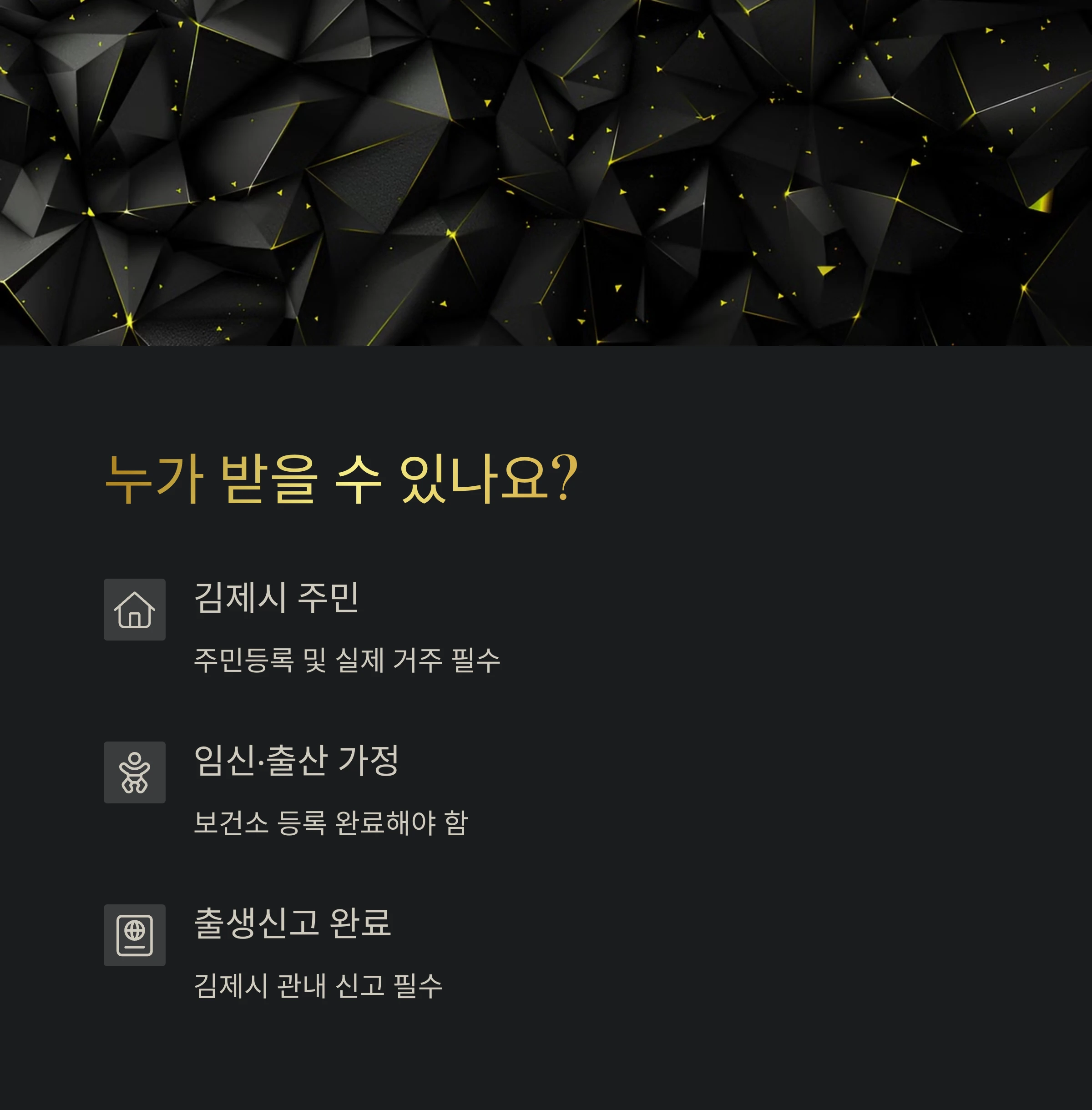 | 지원대상 | 김제시에 거주하며 임신·출산 등록한 가정 |