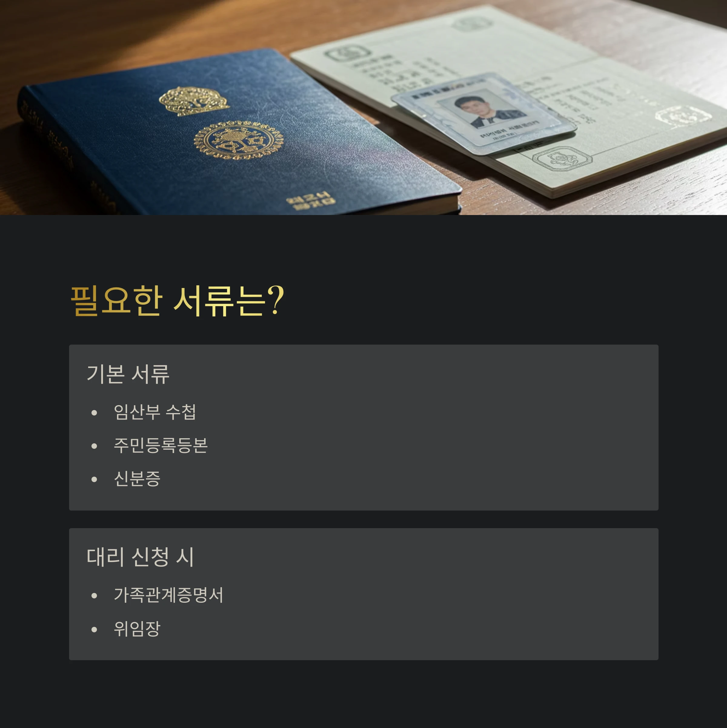 - 출산통합처리서비스(정부24)와 함께 신청하면 가장 효율적
