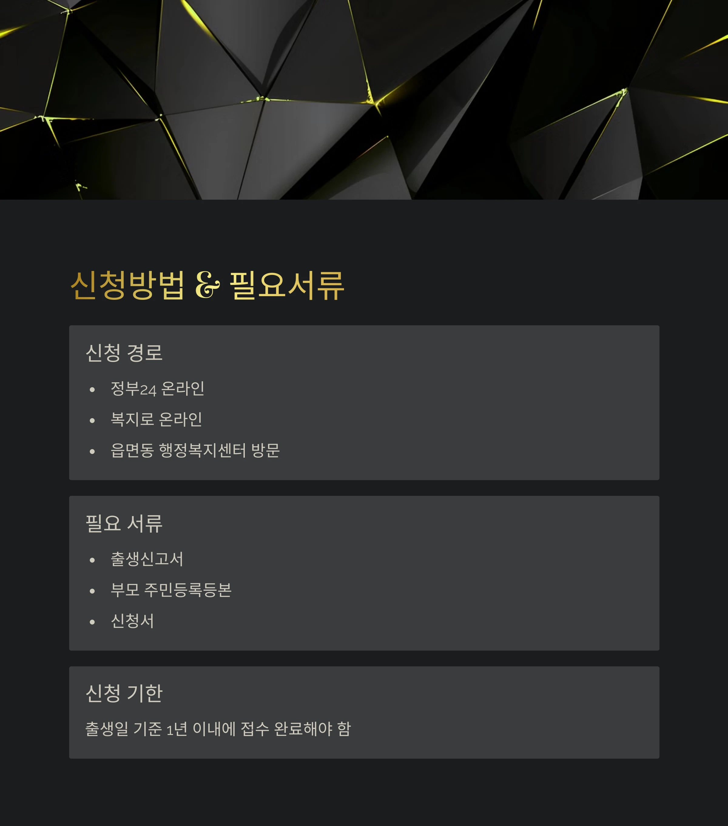 | 신청방법 | 읍면동 행정복지센터 또는 정부24 온라인 신청 |