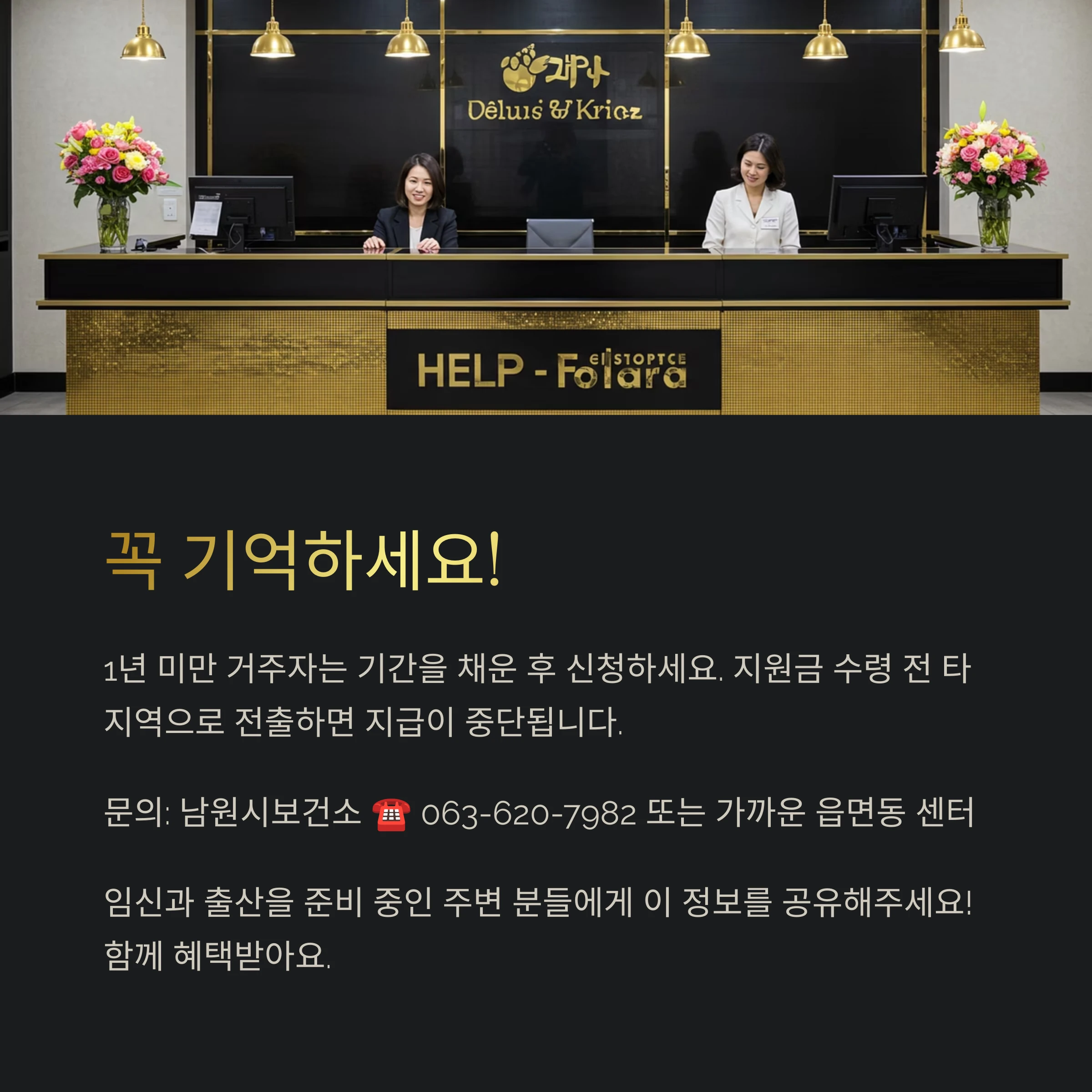 - 예: 2024년 10월 10일 출산, 2024년 1월 1일 남원 전입 → 2025년 1월 1일부터 신청 가능