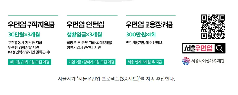 서울 우먼업 프로젝트, 구직지원금, 인턴십, 고용장려금 신청 기간