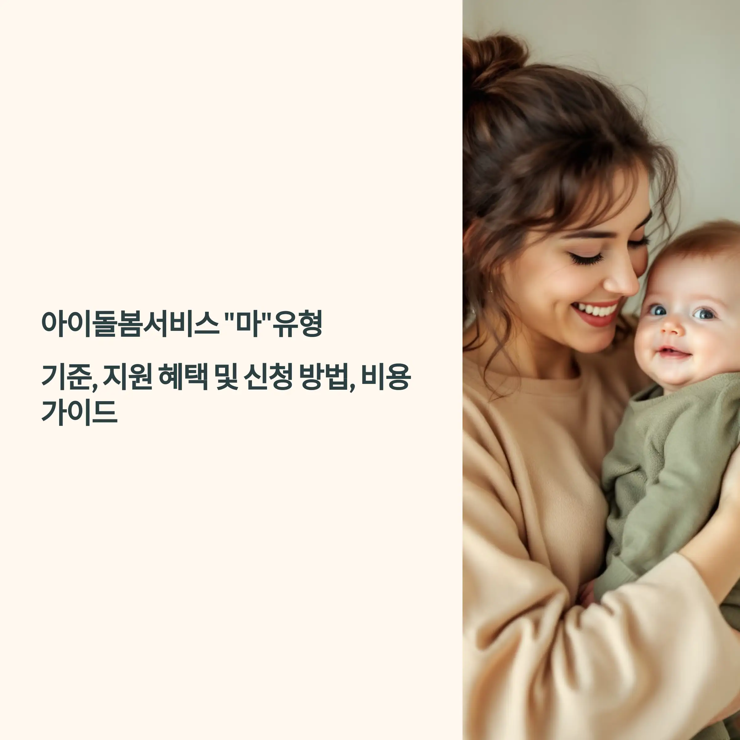 이번 글에서는 아이돌봄서비스 마형의 기준, 혜택, 비용 및 신청 방법을 상세히 알아보겠습니다.