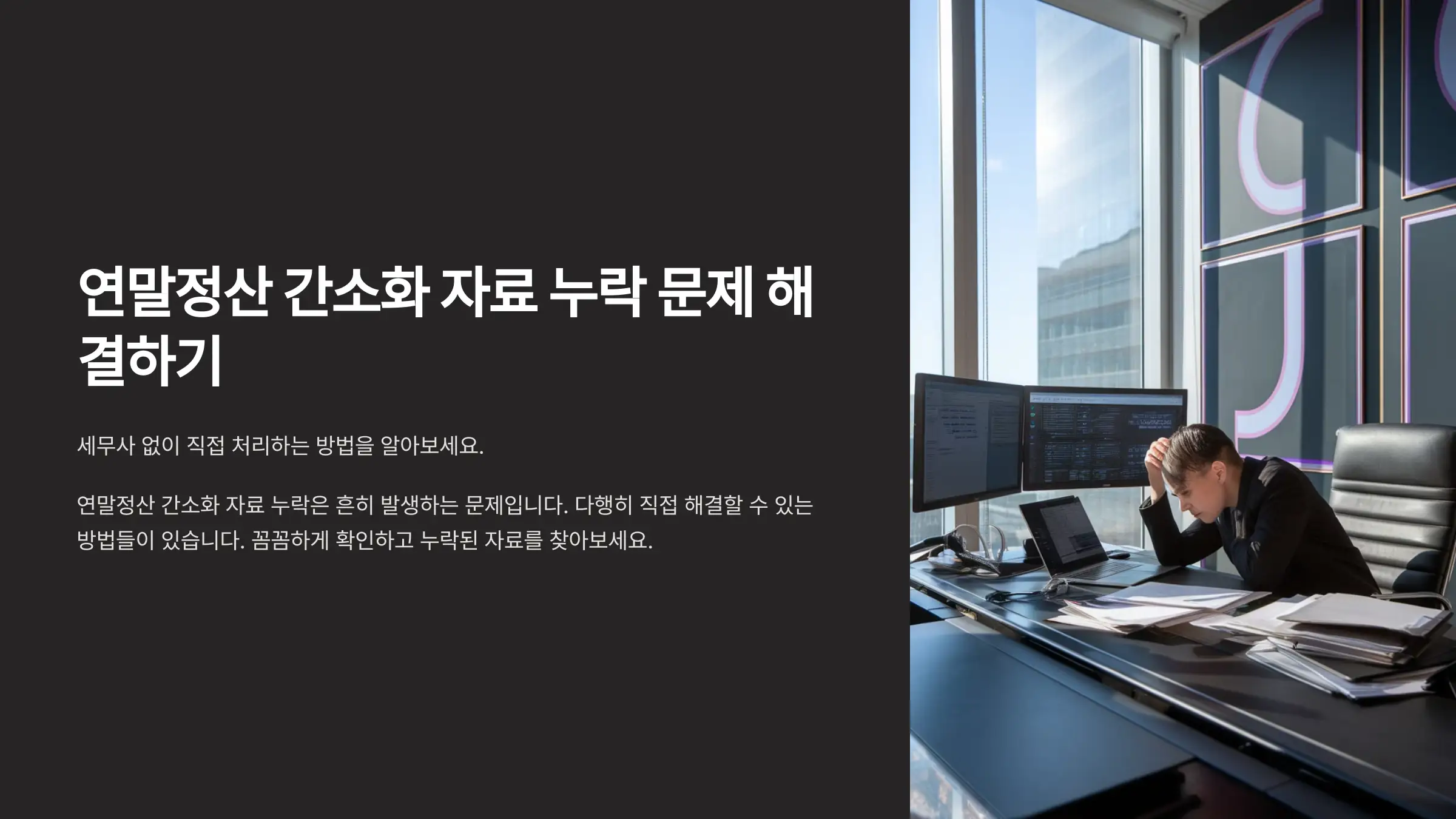 연말정산 간소화 자료에서 누락된 항목이 있더라도, 이를 직접 보완할 수 있는 방법은 충분합니다. 홈택스와 추가 서류 준비를 통해 자료를 완벽히 보완하고 공제 혜택을 극대화하세요. 세무사의 도움 없이도 철저한 준비로 환급금을 놓치지 마세요!