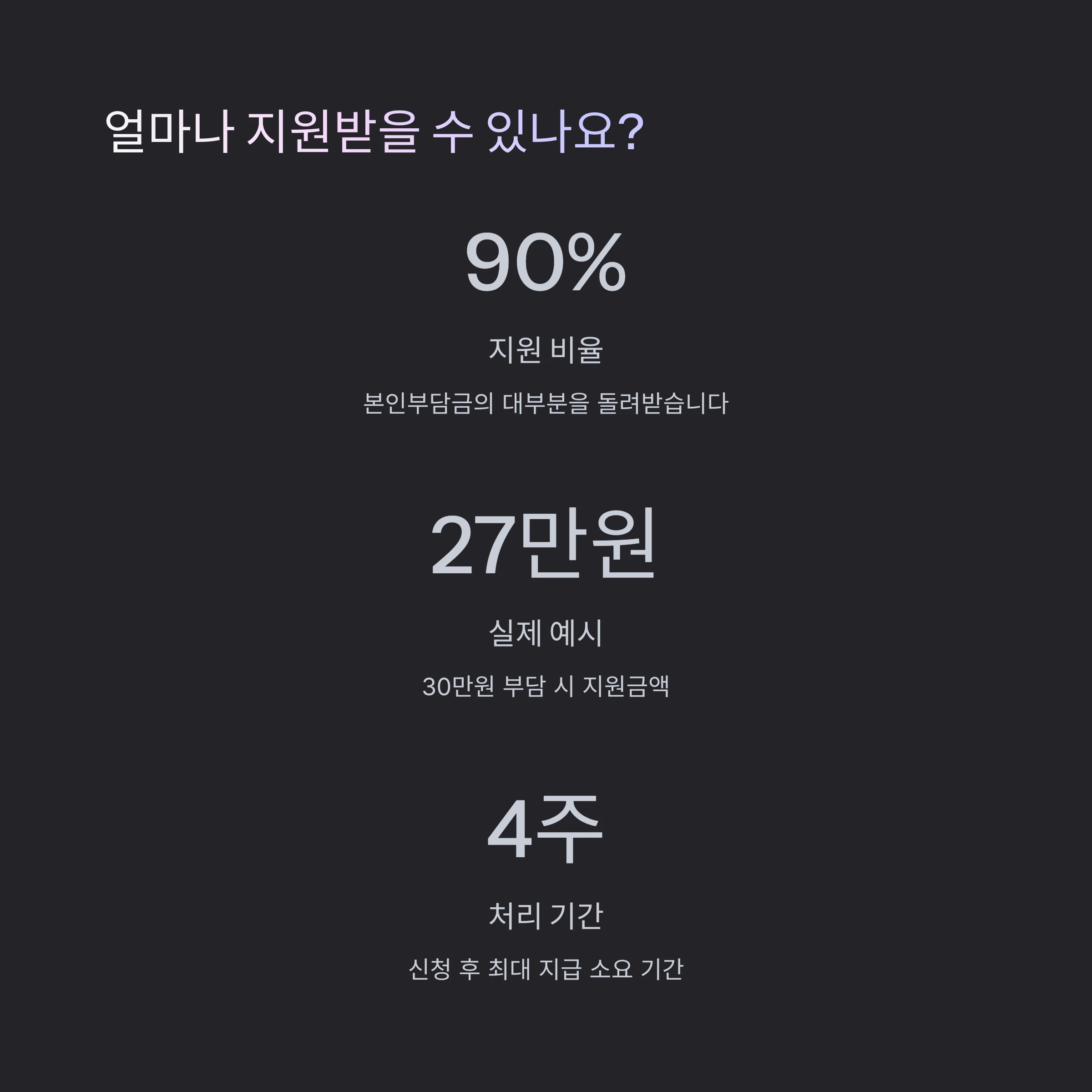 | 지원 금액 | 본인부담금의 90% 환급 |