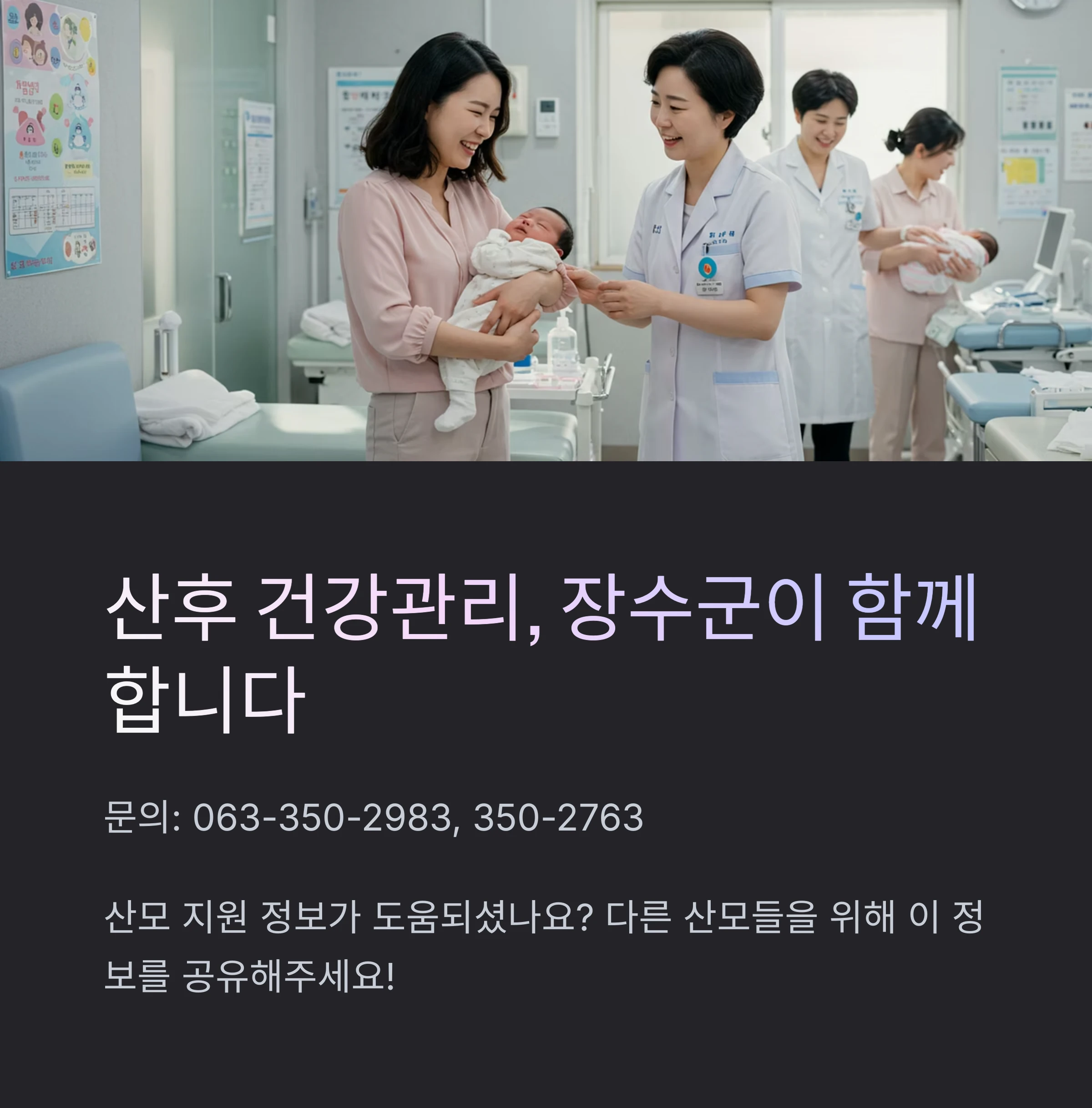 장수군 산모·신생아 건강관리 본인부담금 지원사업 FAQ