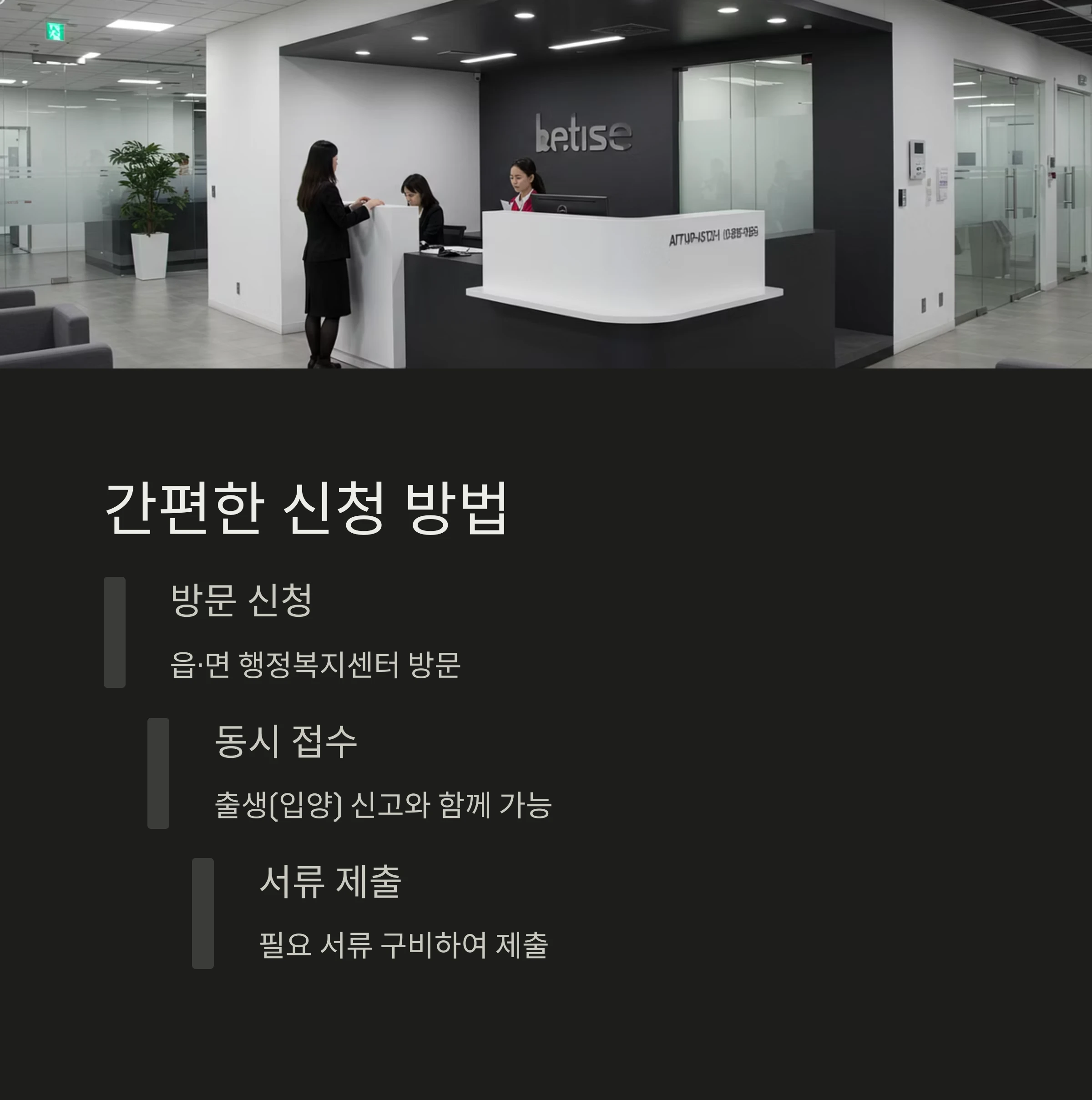 - 방문 상담 시 신분증, 자녀 서류, 등본 지참 시 빠른 안내 가능