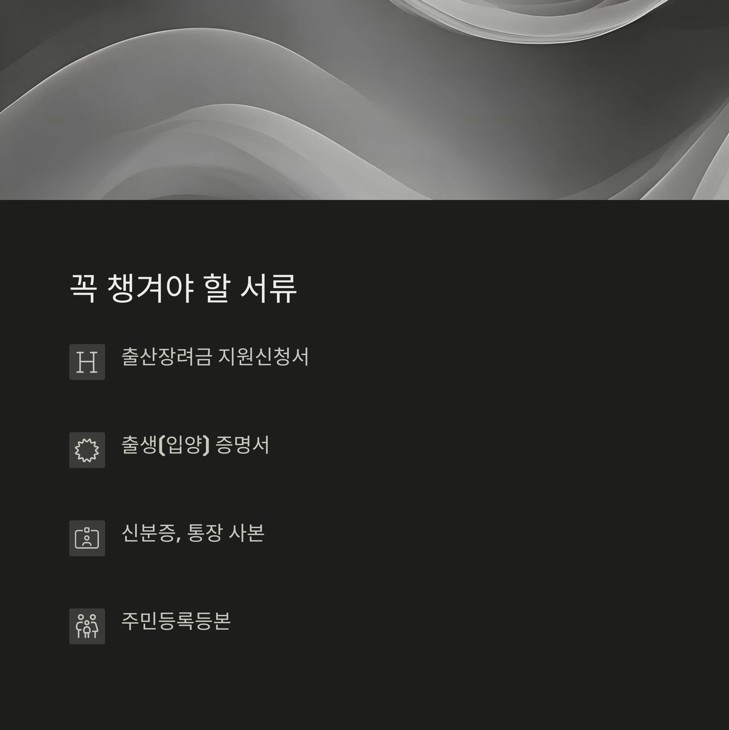 - 출생아 또는 부모 명의의 예금통장 사본 제출