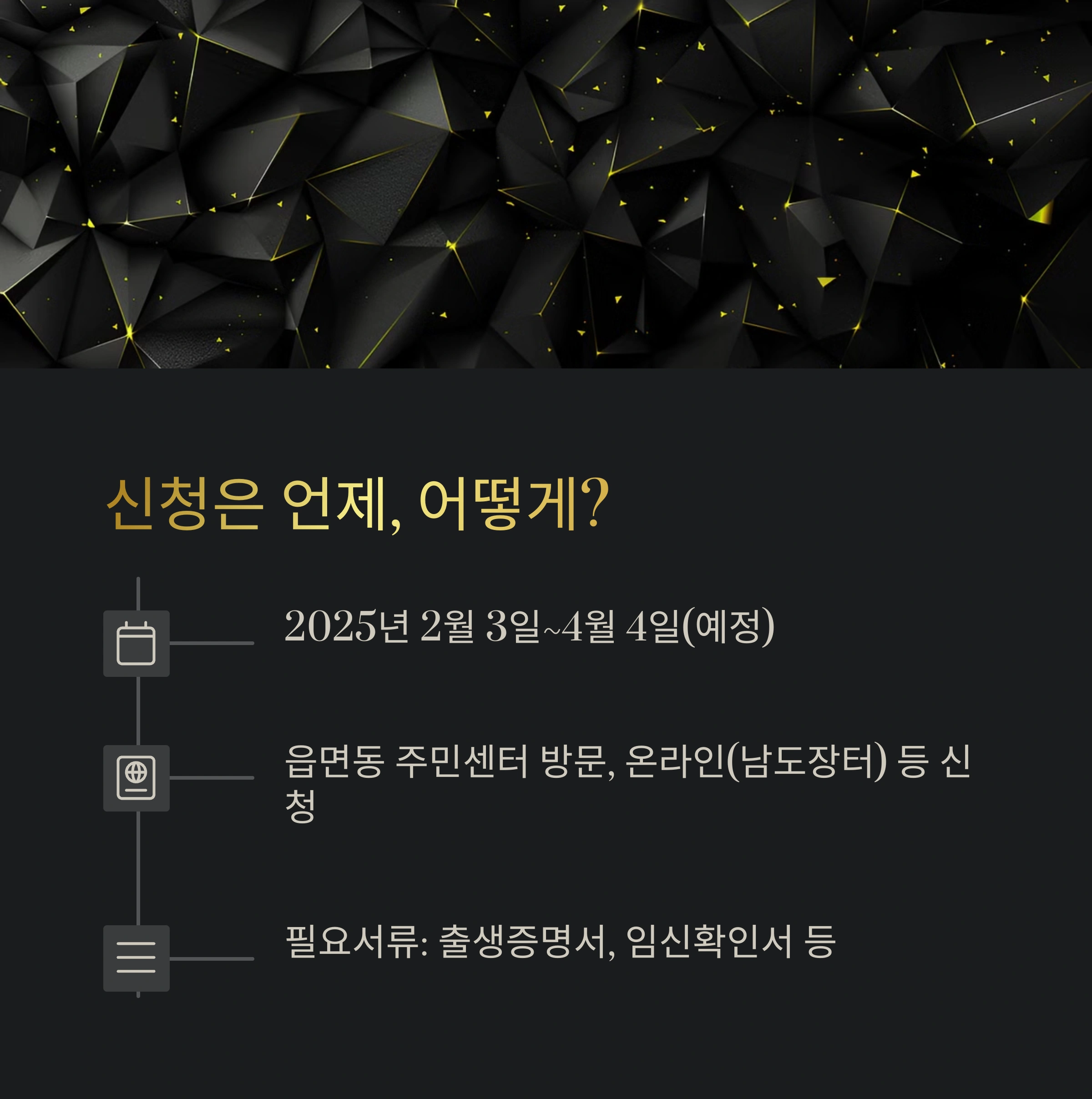 → 신청은 출산 직후 또는 임신 확인 후 즉시 진행하는 것이 안전