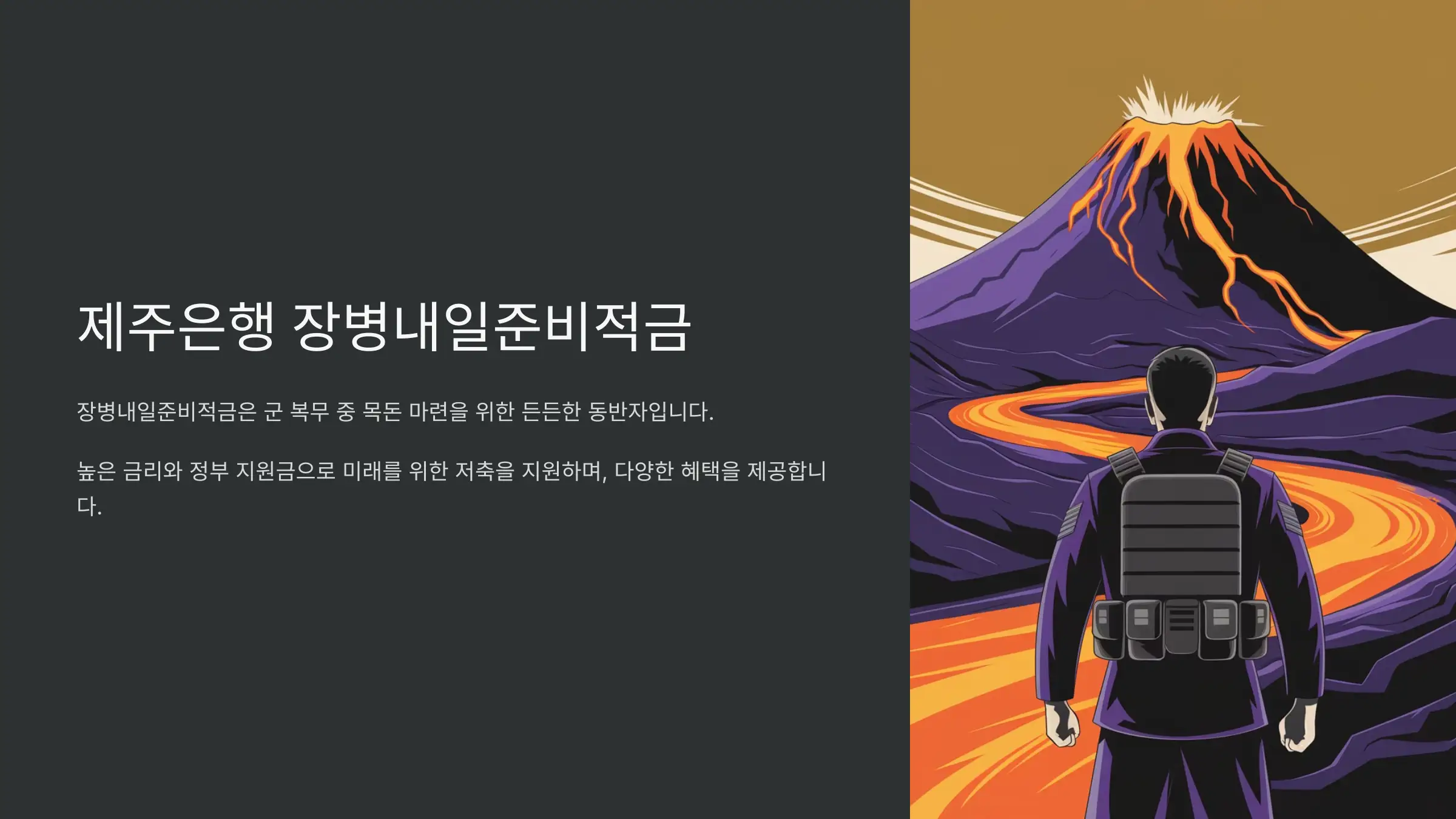 제주은행 장병내일준비적금은 군 복무 중인 장병들이 안정적으로 목돈을 마련하고, 전역 후 학업과 사회 진출을 준비할 수 있도록 설계된 맞춤형 금융 상품입니다.