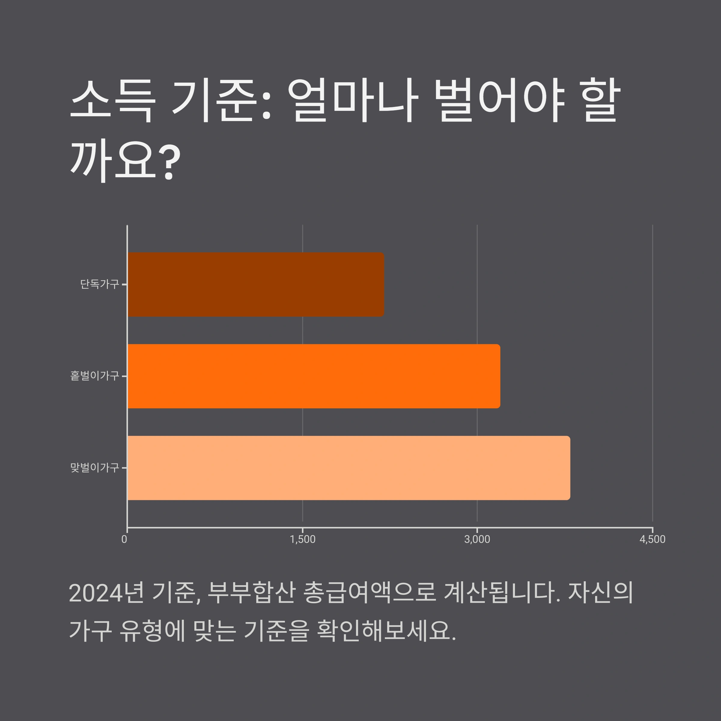 - 2024년도 소득 기준 아래의 요건을 충족해야 합니다.