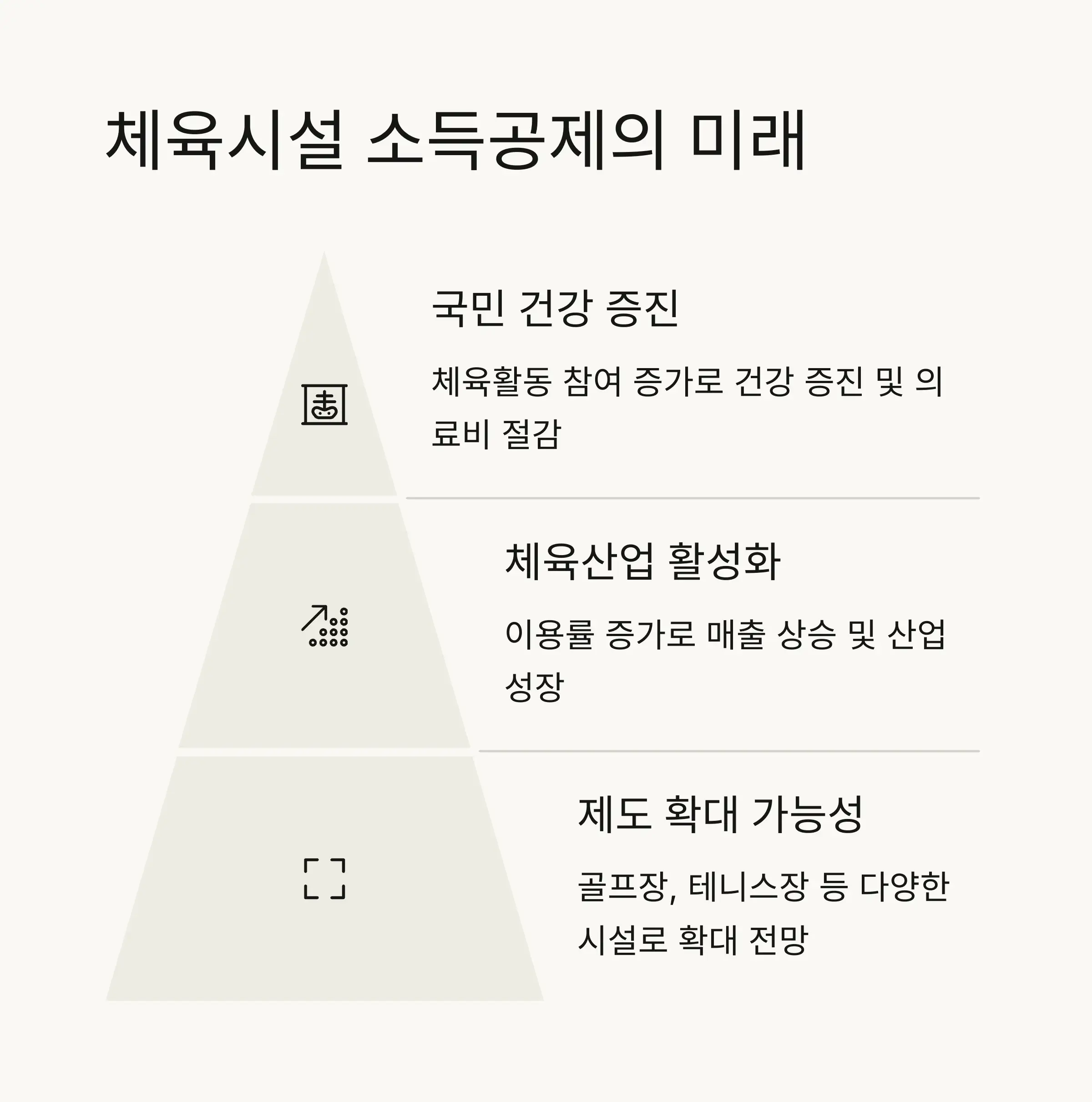 먼저, 이 제도는 국민들의 체육활동 참여를 증진시킬 것으로 기대돼요. 경제적 부담이 줄어들면서 더 많은 사람들이 체육시설을 이용하게 될 것이고, 이는 국민 건강 증진으로 이어질 거예요. 건강한 생활 습관은 장기적으로 국가 의료비 절감 효과도 가져올 수 있답니다. 💪