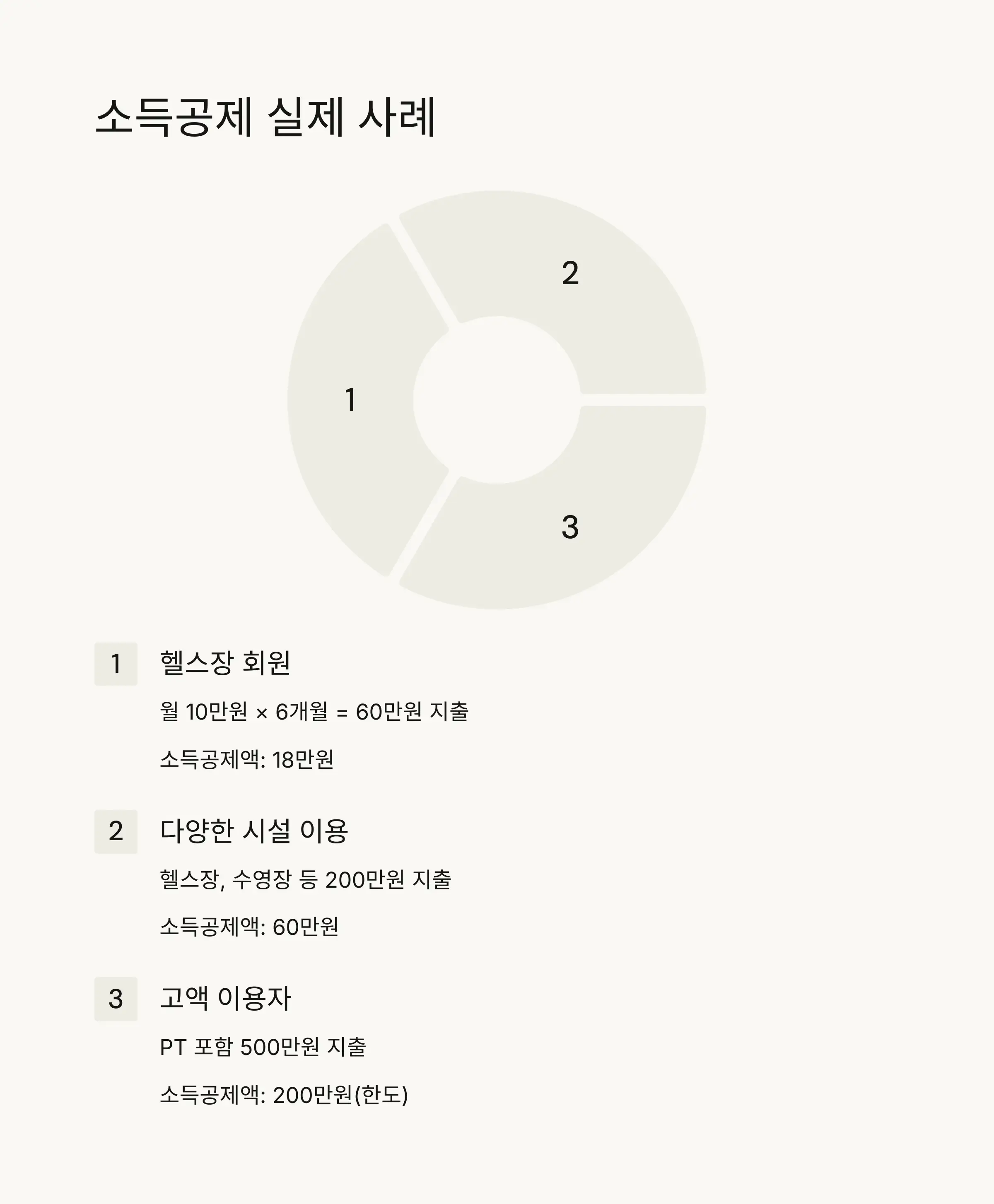 체육시설 이용료 소득공제가 실제로 어떻게 적용되는지 구체적인 사례를 통해 알아볼게요. 이를 통해 내가 받을 수 있는 혜택을 더 명확하게 이해할 수 있을 거예요. 💡