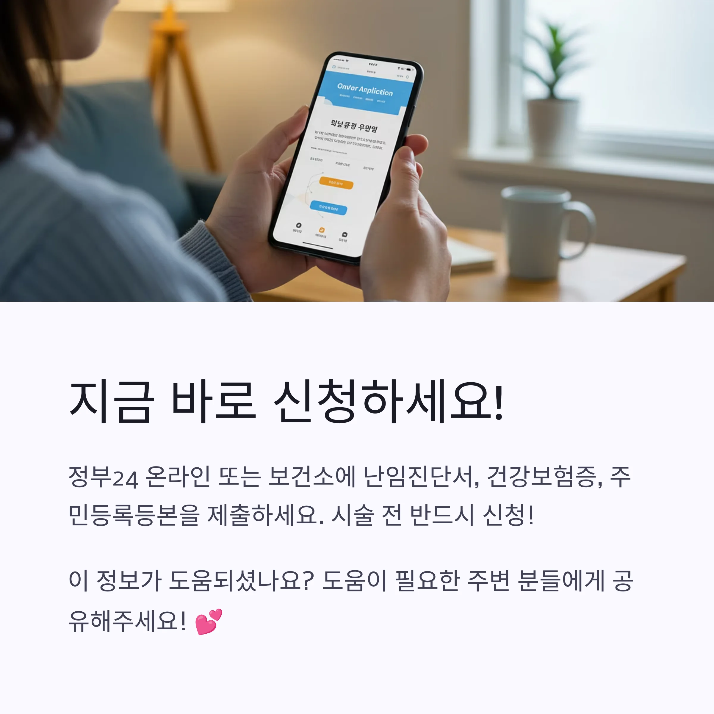 지금 바로 관할 보건소에 방문해 상담받고, 신청 기회를 놓치지 마세요!
