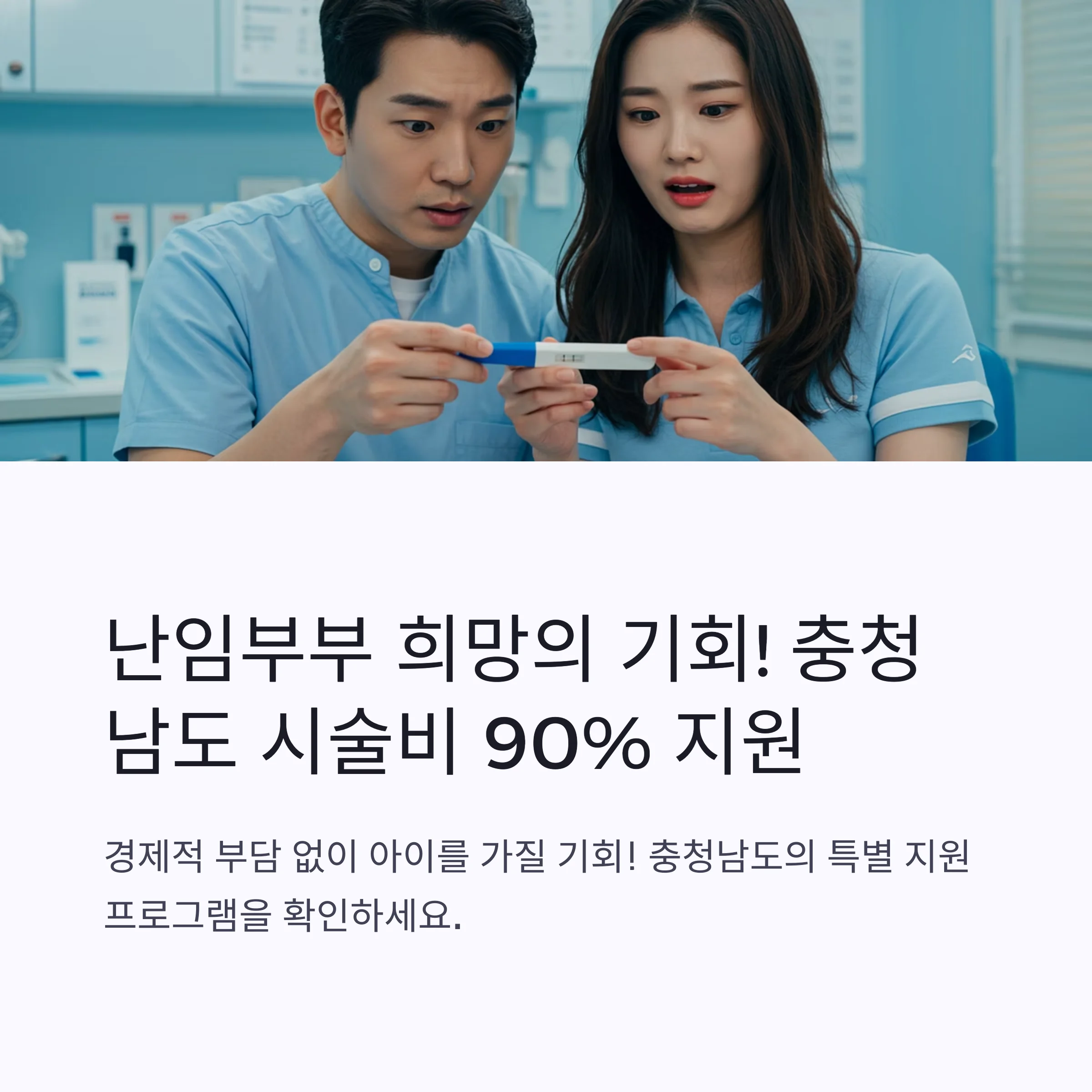 충청남도는 난임 진단을 받은 부부가 경제적 부담 없이 출산의 기회를 이어갈 수 있도록 시술비를 최대 90%까지 현금으로 지원하고 있습니다.