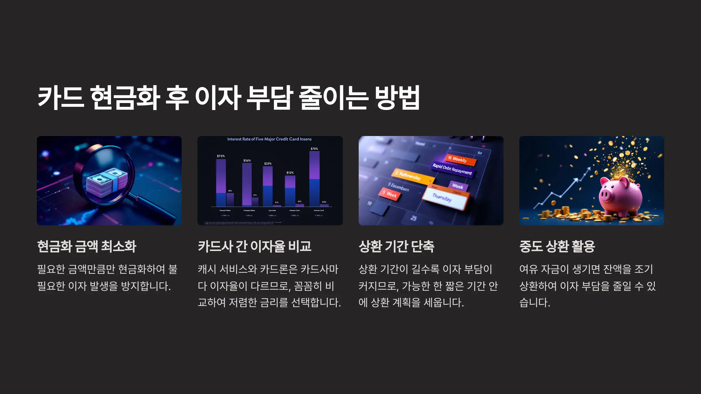 Q1. 카드 현금화 후 이자를 줄이기 위한 가장 효과적인 방법은 무엇인가요?
