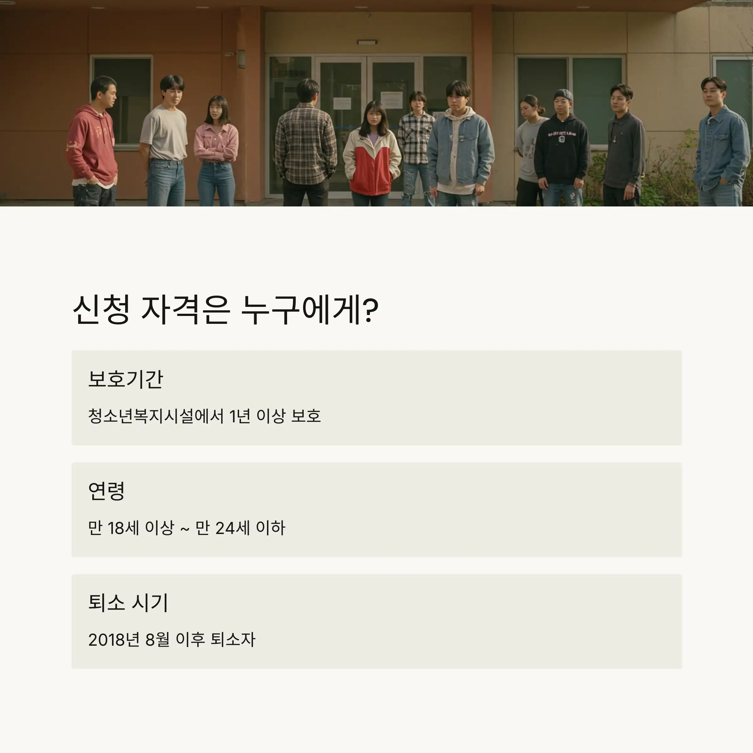 | 퇴소 시기 | 2018년 8월 이후 퇴소자 |
