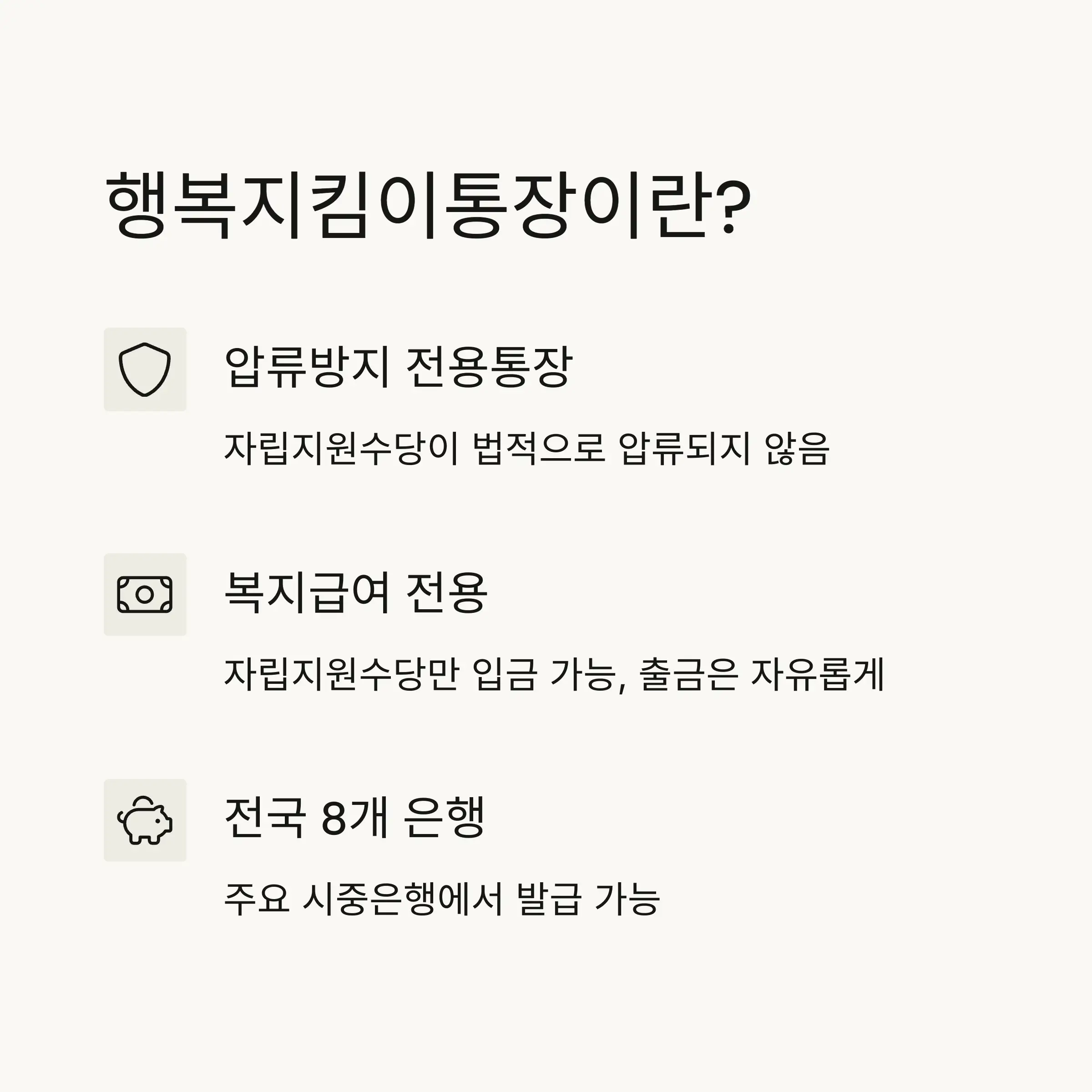 🛡️ 행복지킴이통장의 주요 특징