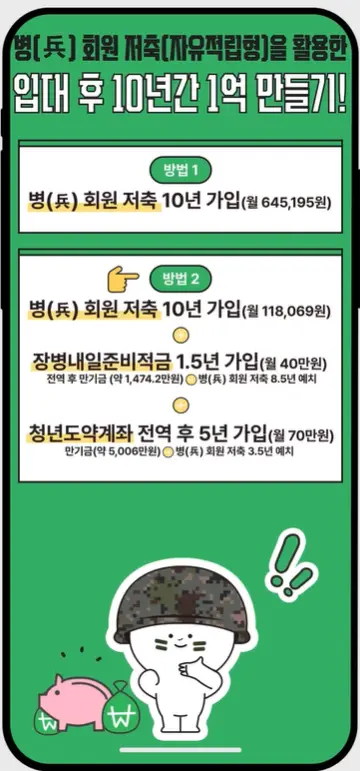 군인공제회에서 제공하는 병(兵) 회원 저축은 2024년부터 새롭게 제공되는 혜택으로, 병사들에게 전례 없이 유리한 조건을 제공합니다. 2024년 1월 9일 법 개정으로 인해 병사들도 군인공제회의 특별회원으로 가입할 수 있게 되었고, 7월 10일부터 이 상품이 시행되고 있습니다.