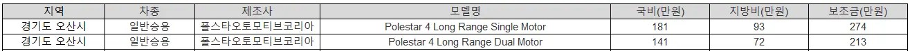 | 일반승용 | 폴스타오토모티브코리아 | Polestar 4 Long Range Single Motor | 181 | 93 | 274 |