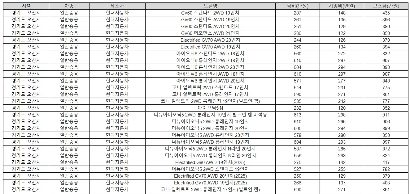 2025년 경기도 오산시 전기차 보조금 FAQ