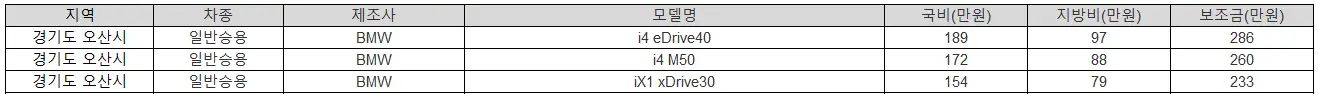 | 일반승용 | BMW | i4 M50 | 172 | 88 | 260 |