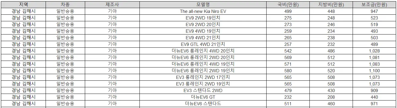 기아자동차 2025년 경남 김해시 전기차 보조금