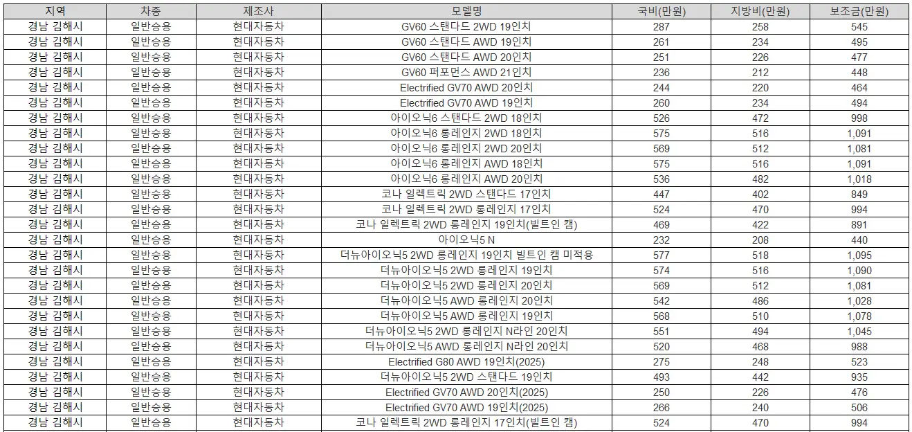 현대자동차 2025년 경남 김해시 전기차 보조금