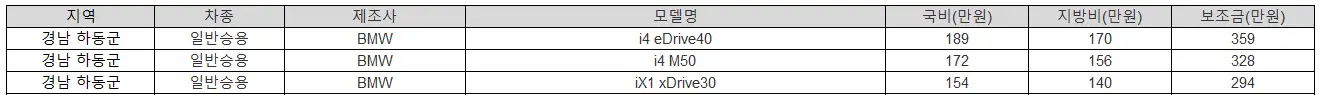 BMW 2025년 경남 하동군 전기차 보조금