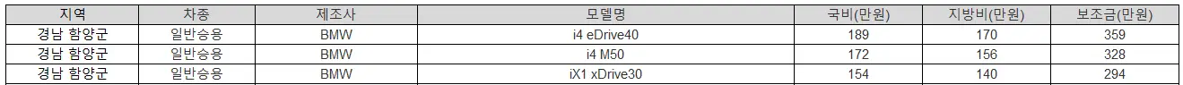 BMW 2025년 경남 함양군 전기차 보조금