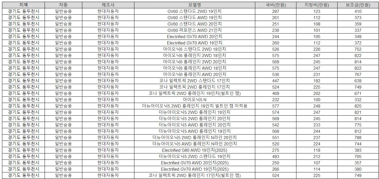 동두천시는 지방비 지원을 통해 다른 지역보다 더 높은 보조금을 제공합니다. 차량 선택 시 이를 반드시 고려하세요.