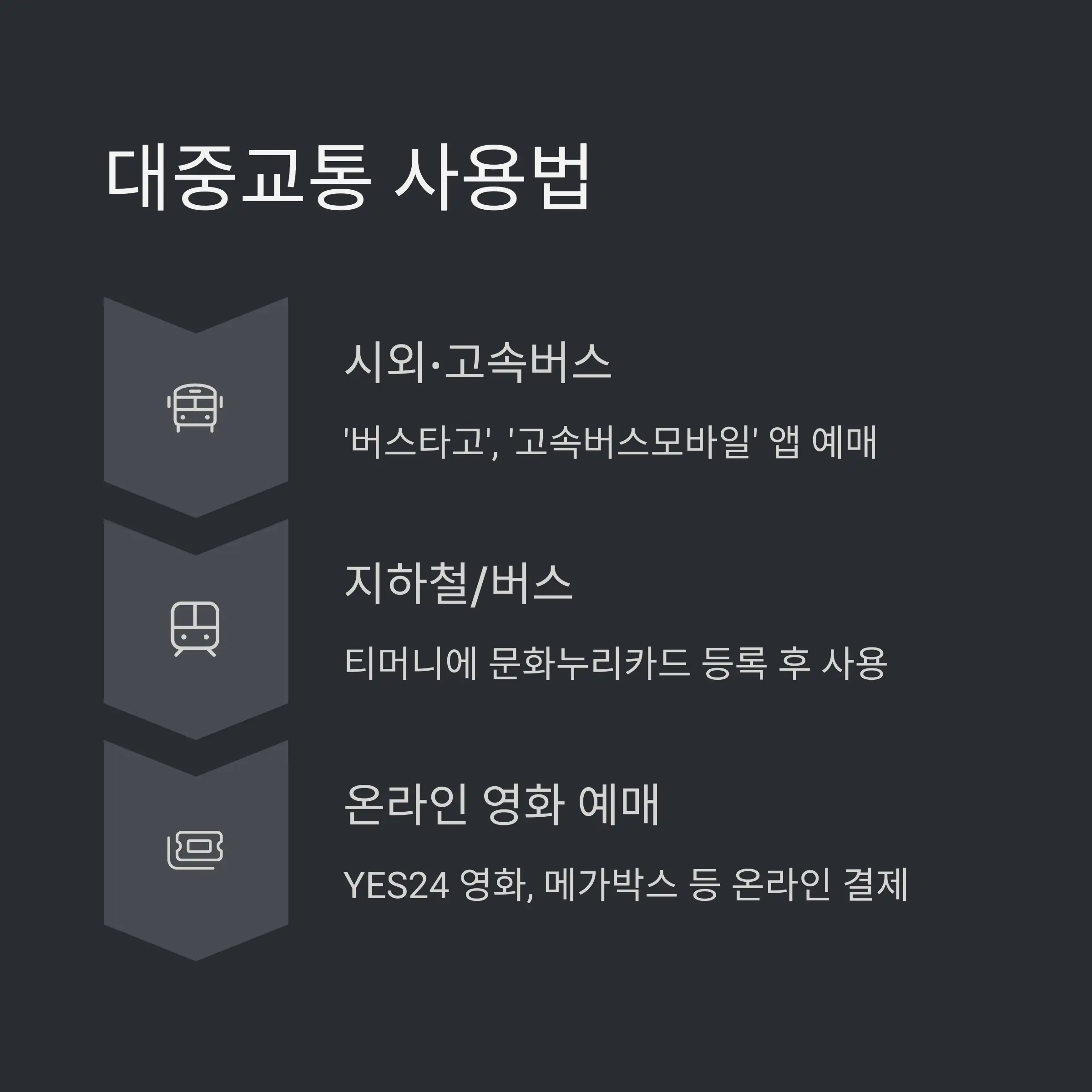 대중교통, 영화관 등 실속 사용법 🚍🍿