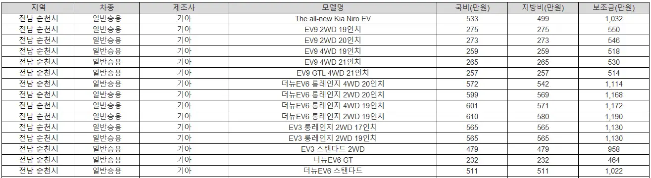 기아자동차 2025년 전남 순천시 전기차 보조금