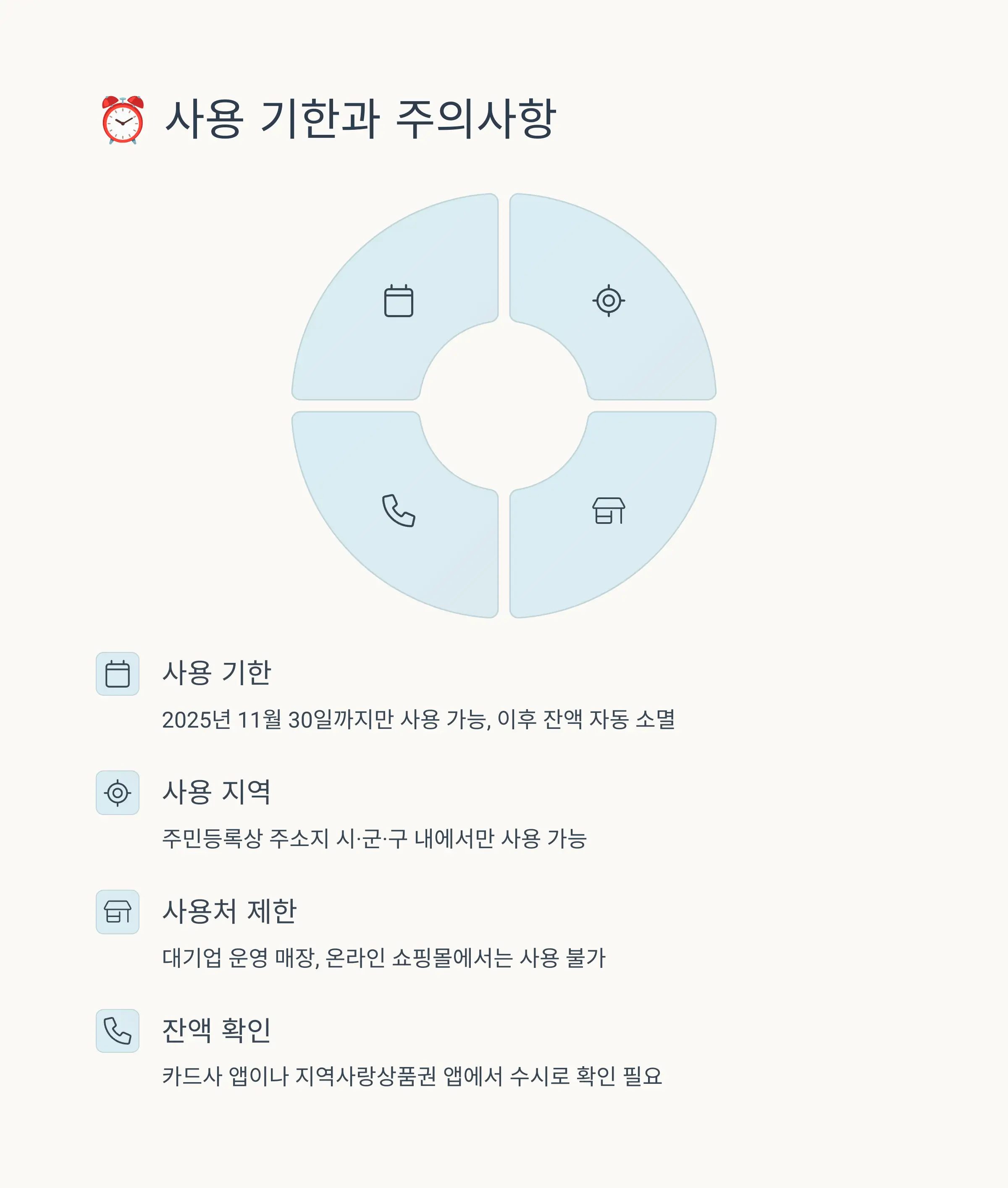 가장 중요한 건 사용 기한이에요. 2025년 11월 30일까지 사용하지 않으면 잔액이 자동 소멸돼요. 한 번 쓰고 잊어버리기 쉬우니 카드사 앱이나 문자 알림 서비스를 활용해서 잔액을 수시로 확인하세요! ⏳