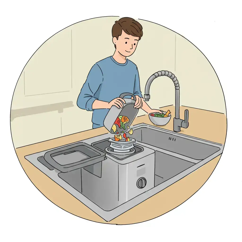 • 음식물을 단순 분쇄해 싱크대로 배출하는 오물 분쇄기