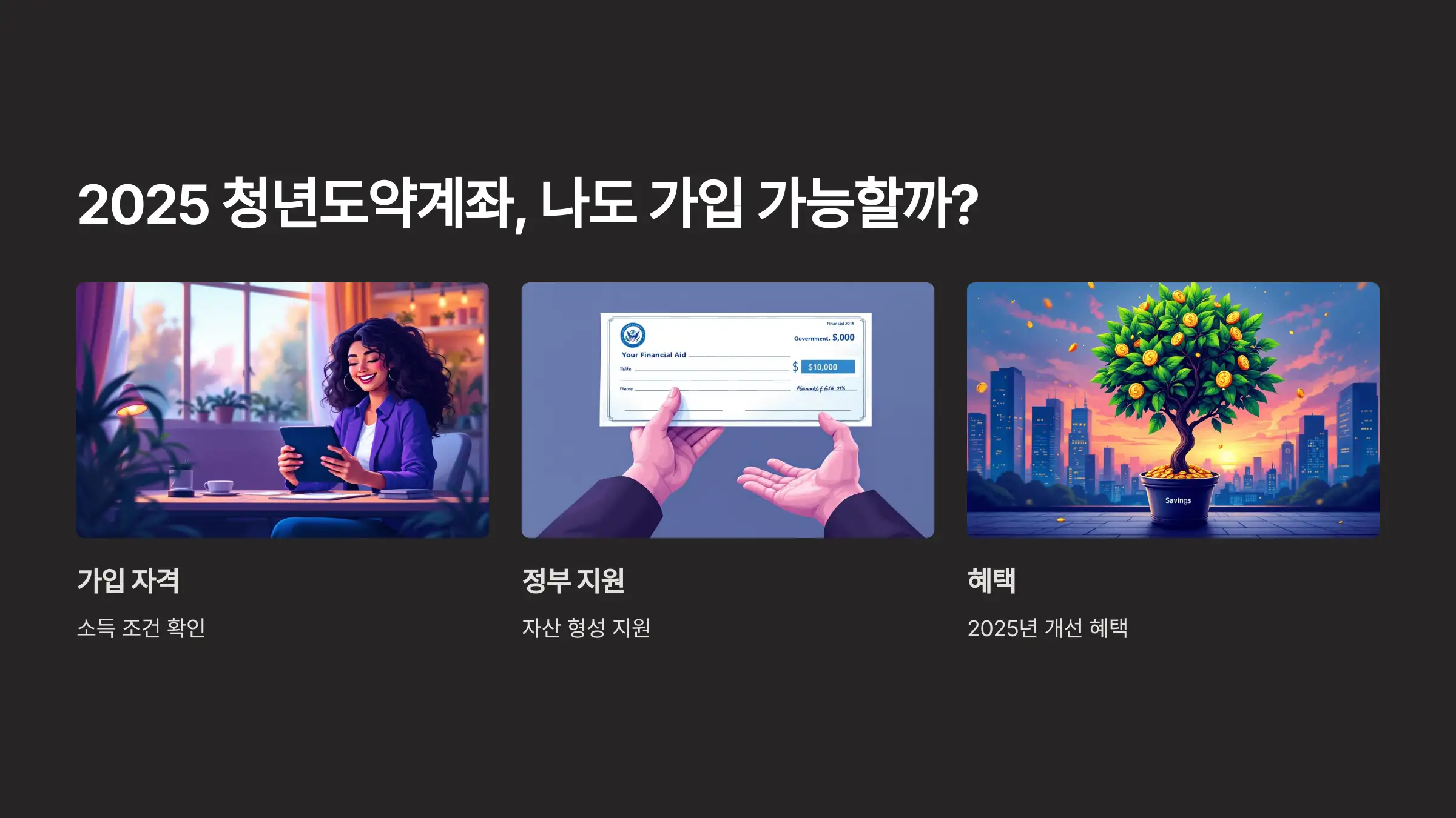 본인의 소득과 가구 요건을 꼼꼼히 확인하고, 정부의 자산 형성 지원 혜택을 최대한 활용해보세요.